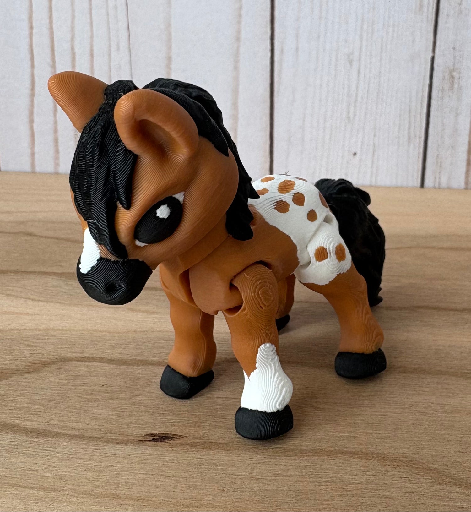 3D printed horse. A lil over 3 inches tall, fully articulated.